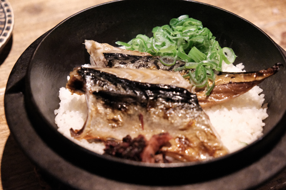 写真は、ちょうどよいサイズの一人前すき焼きと、鯖の炊き込みご飯です。